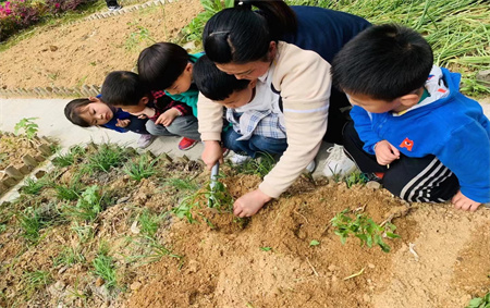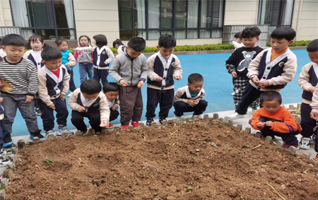 活动中,老师带着孩子们亲身参与到种植活动中,从收集种子,播种到浇水,每个孩子都有自己要守护的植物,照顾植物后期生长,争做护植小能手。
