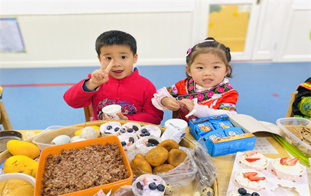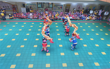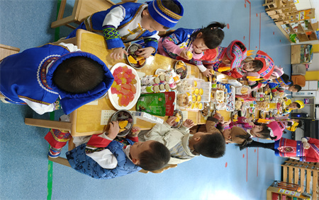 在这热闹非凡的活动中,当然少不了百家宴。百家宴是独特又古老的传统民俗文化,大家一起制作的“壮族三月三”百家宴,大家你一道菜,我一碗汤,齐聚饭桌,共享佳肴,庆祝节日。宝贝们吃的是民族风味,收获的是彼此间更融洽的交流和更亲近的关系,大家脸上都洋溢着幸福的笑容。“壮乡三月三,歌飘满桂林”舞龙舞狮,节日盛装,锣鼓齐鸣,美食美节,百人竹竿舞,少龙飞舞等等一系列的活动,欢乐的情景,深深印在孩子们的心中。民俗风情走进校园,传承中华民族悠久的民族文化。